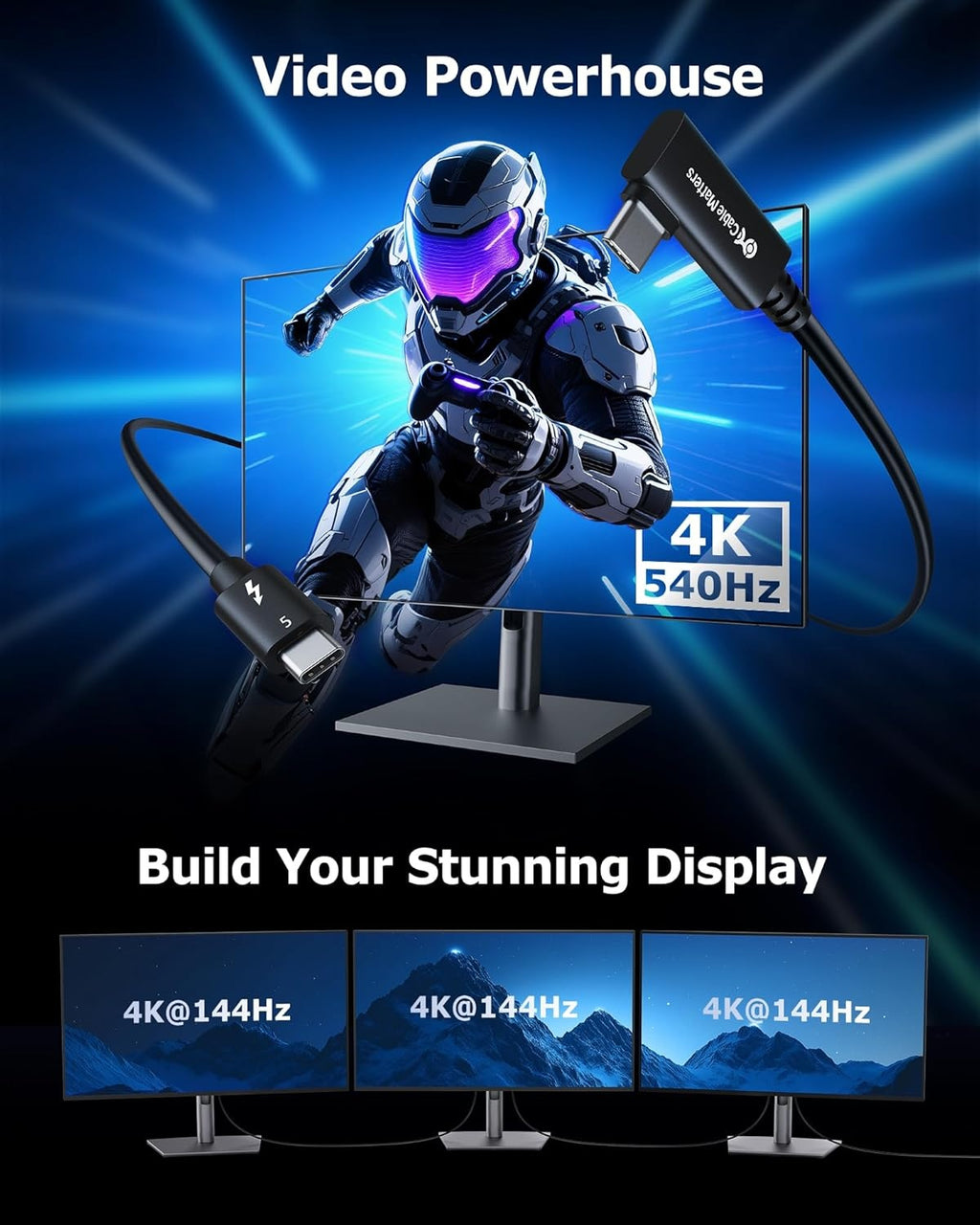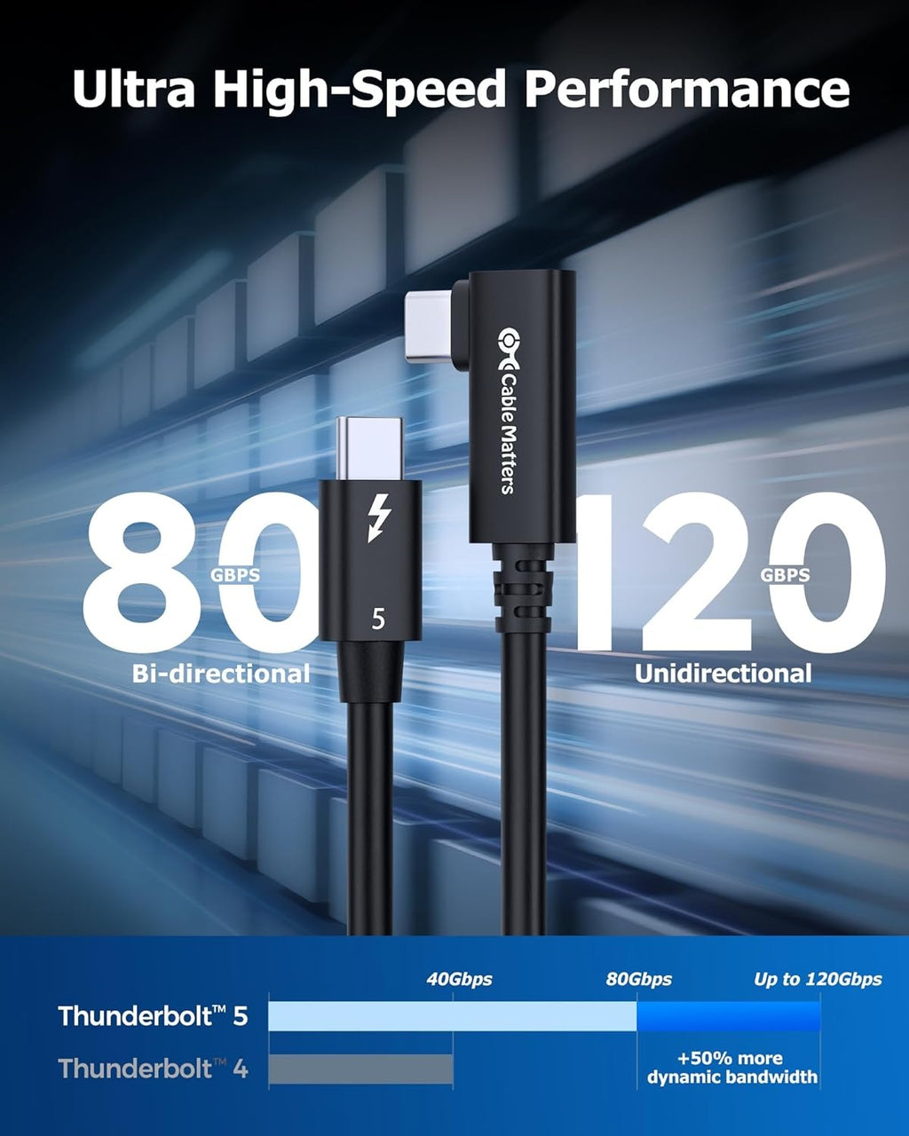 Tämä tuote on Cable Mattersin Thunderbolt 5 -kaapeli, jossa on 90° kulmaliitin ja Intel-sertifiointi. Se tarjoaa jopa 80Gbps kaksisuuntaisen tiedonsiirron, 120Gbps videokaistanleveyden ja tukee jopa 240W latausta. Täydellinen ammattilaisille ja sisällöntuottajille, jotka tarvitsevat huippusuorituskykyä, erinomaista kuvanlaatua ja luotettavaa virransyöttöä kompaktissa muodossa.