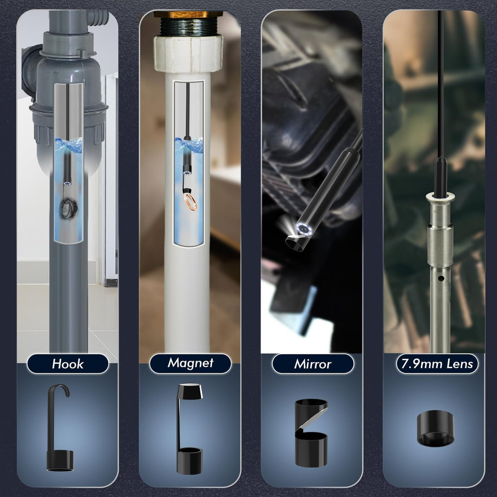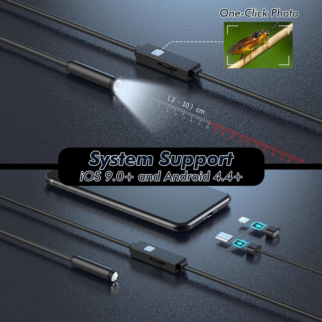 Tämän tuotteen avulla voit helposti tarkastaa vaikeasti saavutettavat paikat suoraan puhelimesi kautta – ilman WiFi-yhteyttä. Kompakti, vedenkestävä ja korkearesoluutioinen endoskooppikamera sekä Androidille että iOS:lle.