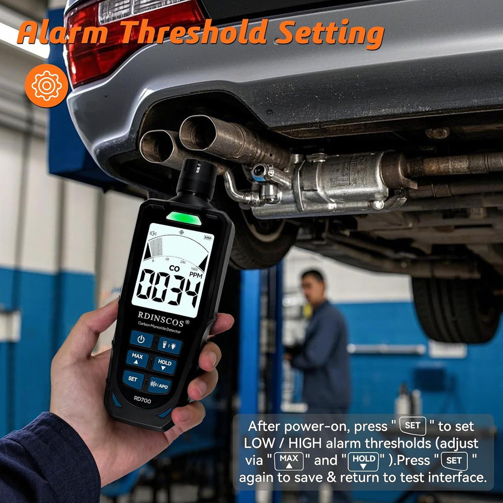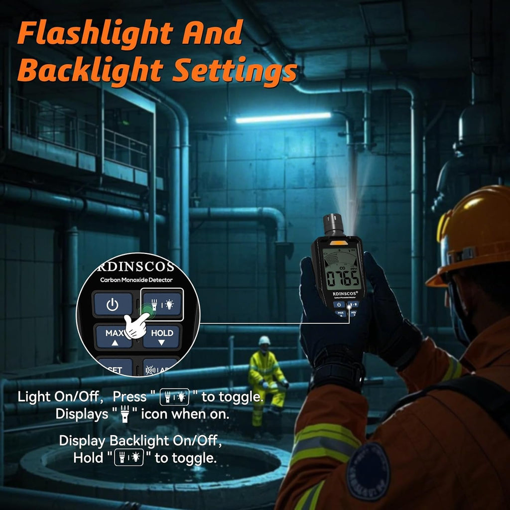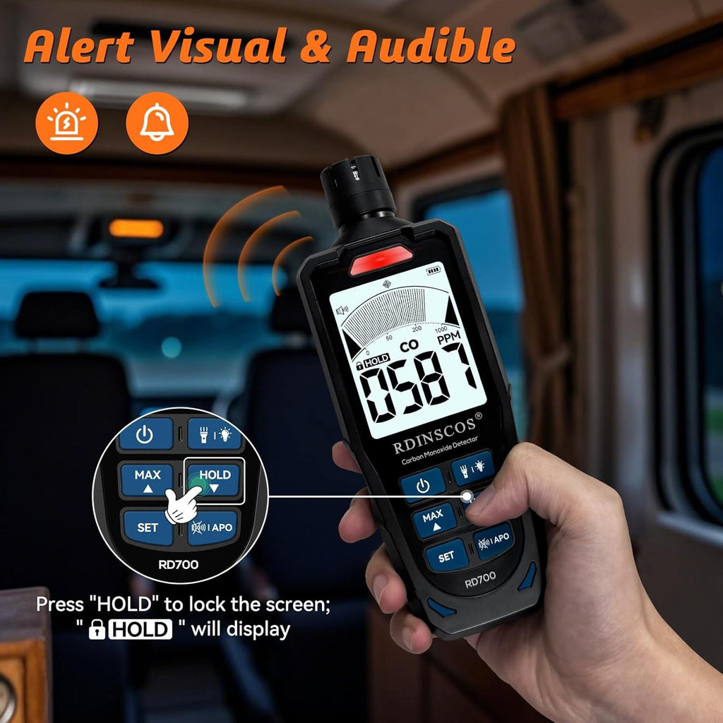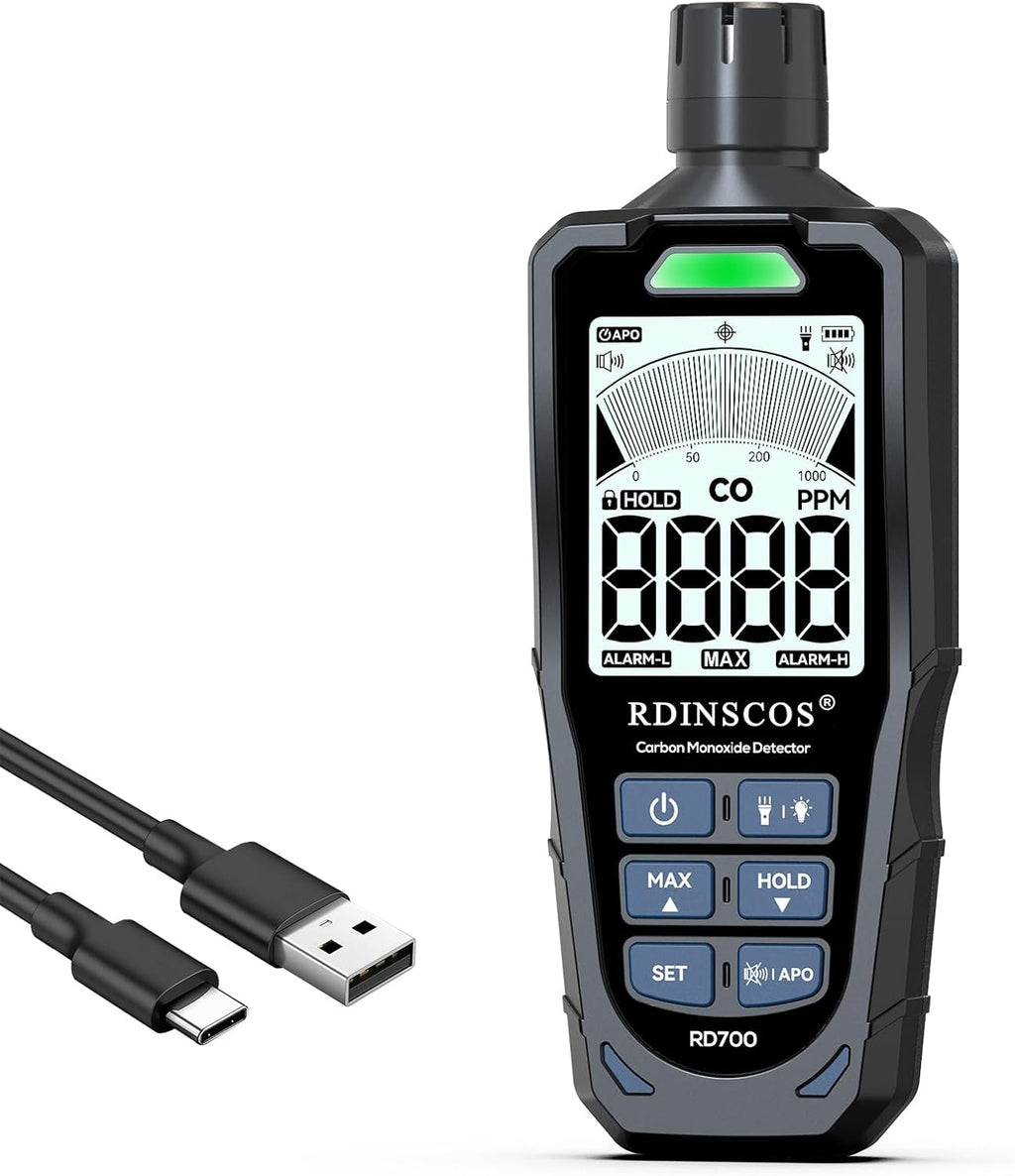 Kolmonoxiddetektor 0 ~ 1 000 ppm med LCD-skärm, bärbart CO-larm med visuella och hörbara larm, uppladdningsbar CO-detektor för hem, camping, utomhus