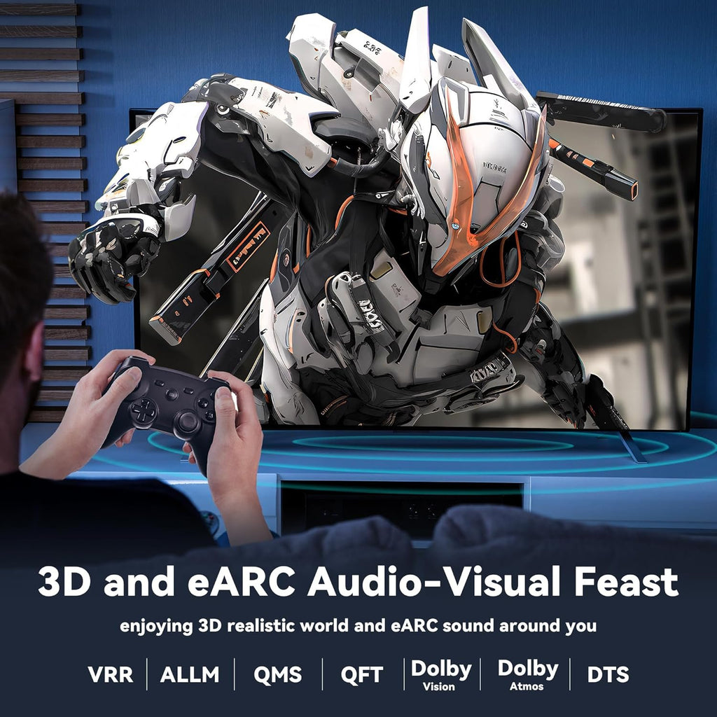 Tämä NÖRDIC HDMI AOC -kaapeli täyttää kaikki HDMI-organisaation ohjelmassa määritellyt tekniset vaatimukset, mukaan lukien resoluutio jopa 8K 60Hz, 4K 120Hz, kaistanleveys jopa 48Gbps, tuki 100Mbit/s Ethernetille, Dynamic HDR, tuki jopa 32 erilliseen äänikanavaan 48 kHz kukin, tuki Dolby Vision Dolby Atmosille ja Enhanced Audio Return Channel ARC:lle, tuki kuvasuhteelle 21:9, tuki Dual Viewille, joka tarkoittaa kaksinkertaista videosignaalia samassa kaapelissa ja tuki Variable Refreshille. Arvostele VRR. Yhteensopiva Xbox Series X, Xbox 360, PS5, PS4 Pro, Xbox One, Apple TV, Nintendo Switch & Wii U. Yhteensopiva Nvidia RTX3080, 3090, 4080 ja 4090 kanssa,