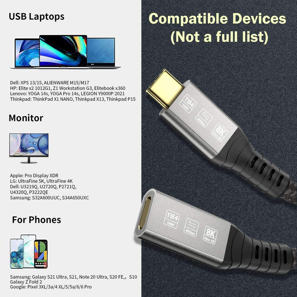 NÖRDIC 2m Thunderbolt 4 Jatkokaapeli mahdollistaa Thunderbolt 4 USB-C -liitännän ulottuvuuden pidentämisen tukemalla 100W pikalatausta ja jopa 40 Gbps tiedonsiirtonopeuksia. Se sopii täydellisesti laitteisiin, jotka vaativat suurta nopeutta ja tehoa, kuten ulkoiset kiintolevyt, telakointiasemat tai tehokkaat kannettavat tietokoneet.