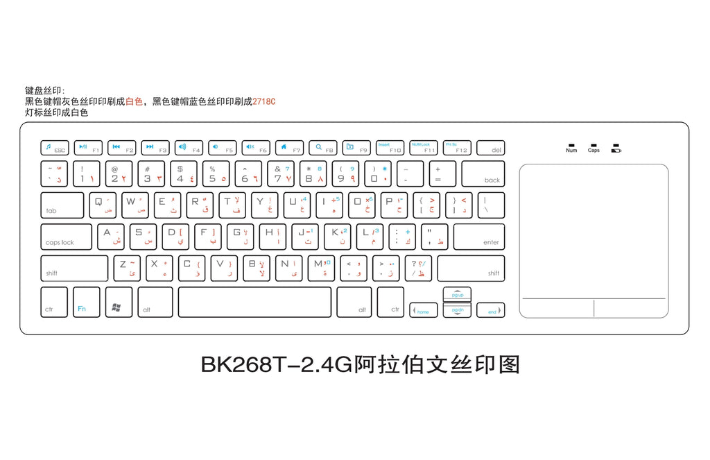 NÖRDIC Langaton näppäimistö kosketuslevyllä yhdistetään tietokoneeseen, puhelimeen, tablettiin tai muuhun laitteeseen Bluetooth 5.0:n avulla ja tarjoaa 78-näppäimisen arabialaisen näppäinasettelun ja 70x90mm kosketuslevyn. Maksimi kantama on 10 metriä. Näppäimistön mitat ovat 367x123x20mm ja paino 271 grammaa. Näppäimistö toimii 2xAAA-paristoilla (paristot eivät sisälly)