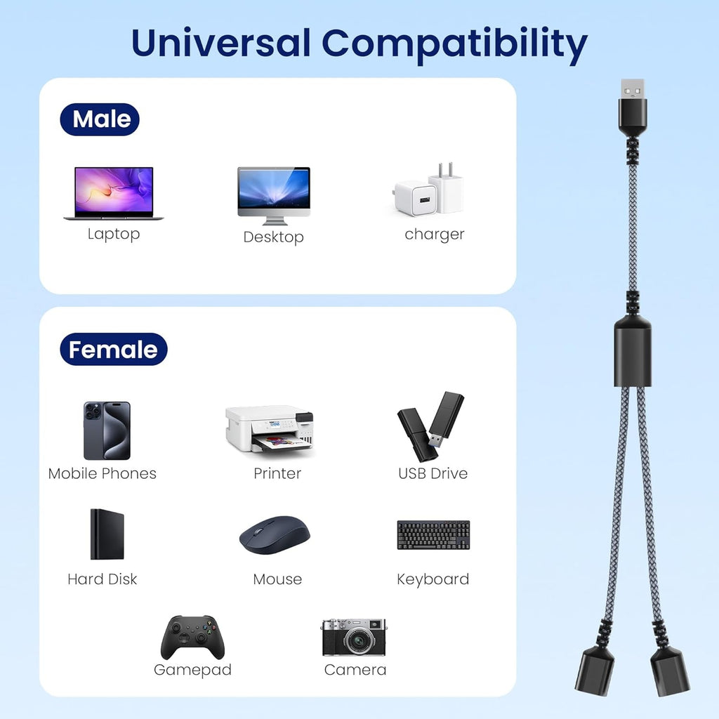 Tämä tuote on USB-sovitin, joka muuntaa yhden USB-A-portin kahdeksi USB-C-portiksi. Täydellinen, kun haluat liittää useita USB-C-laitteita samanaikaisesti tietokoneeseen, laturiin tai muuhun USB-A-porttiin. Yksinkertainen ja kätevä ratkaisu käyttömahdollisuuksien laajentamiseen.