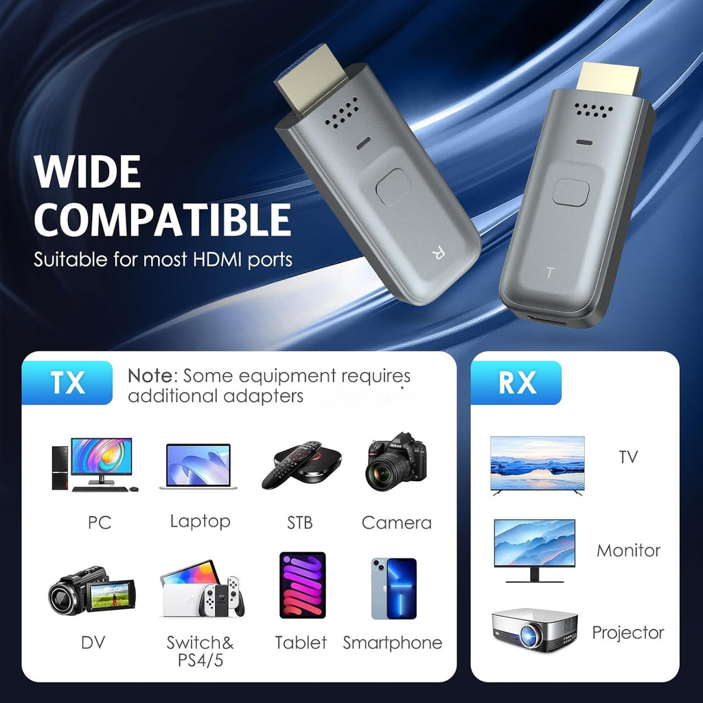Wide Compatibility for Multiple Devices: This versatile wireless HDMI is compatible with a wide range of devices, including laptops, HDTV, tablets, smartphones, projector. Whether you’re projecting content for a business presentation, classroom teaching, or streaming movies at home, it’s the ideal solution for all your HDMI needs