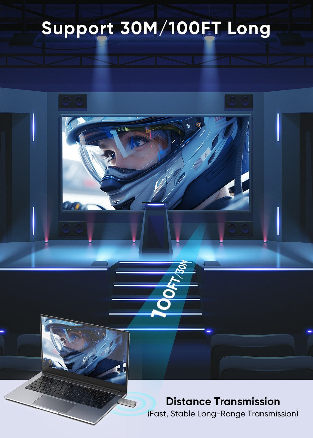 5G Wireless Transmission: Equipped with 5G technology, this HDMI wireless transmitter and receiver ensures stable and fast data transmission, with a range of up to 33ft (10m). The signal can easily pass through walls and obstacles, providing you with uninterrupted streaming and low-latency (<0.01s) performance